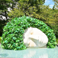 One day a beautiful boy named Narcissus unwittingly fell in love with his own image reflected on the surface of a spring. Languishing away in unrequited love, Narcissus died and has been reincarnated as the Narcissus flower, which demurely gives bloom to lovely flowers. Just like Narcissus of Greek mythology, this angel is leaning her cheek toward her own face reflected on the water’s surface. The lover on the water’s surface never replies, and her flowing tears would make the image disappear. Yet even though she laments for her unobtainable love, it appears as if her face were smiling somewhat. Under the idea that “art must exist in life,” the creators, a married couple named François-Xavier and Claude Lalanne, worked on pieces in a variety of different fields, such as furniture shaped like animals, until the husband, François-Xavier, passed away in 2008. In this work using water, the contrast between the stone face that shines white and cold and its hair inspired by vegetation serves to accentuate the world of love’s intoxication.