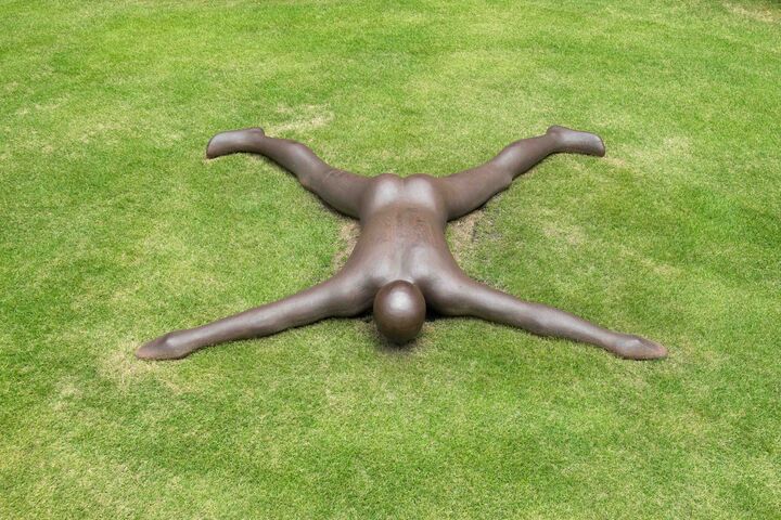 Antony Gormley first studied archeology and anthropology at Trinity College, Cambridge University, before he studied art. From 1981, Gormley began to produce sculpture using casts made from his own body. The figure in this work lying spread-eagled on the ground is a cast taken of Gormley himself. Usually Gormley makes a plaster cast and after reinforcing it with fiberglass, encloses the entire piece in thin sheets of lead. But this work is cast in iron. The figure is devoid of any facial features and individuality, becoming a universal character.