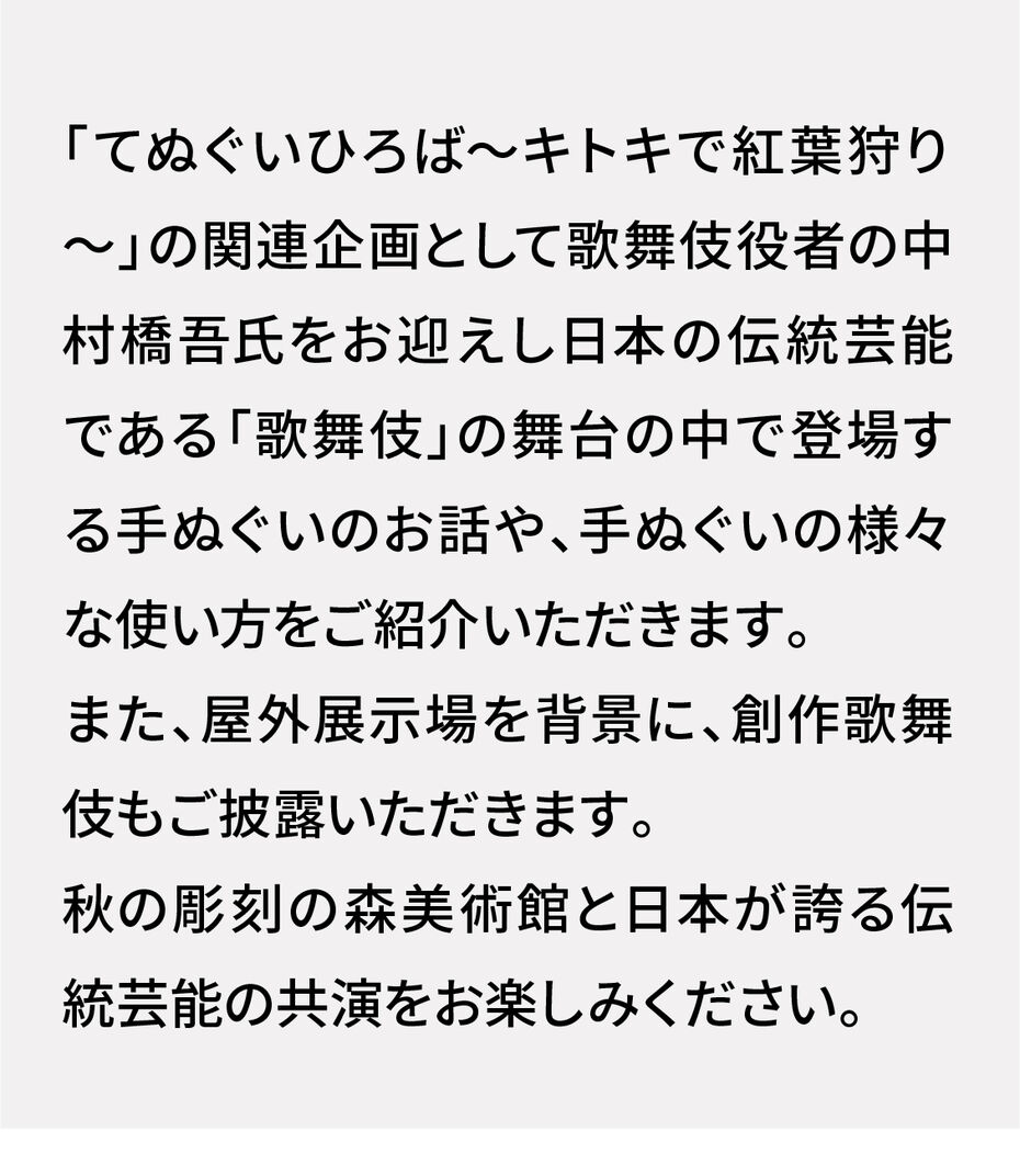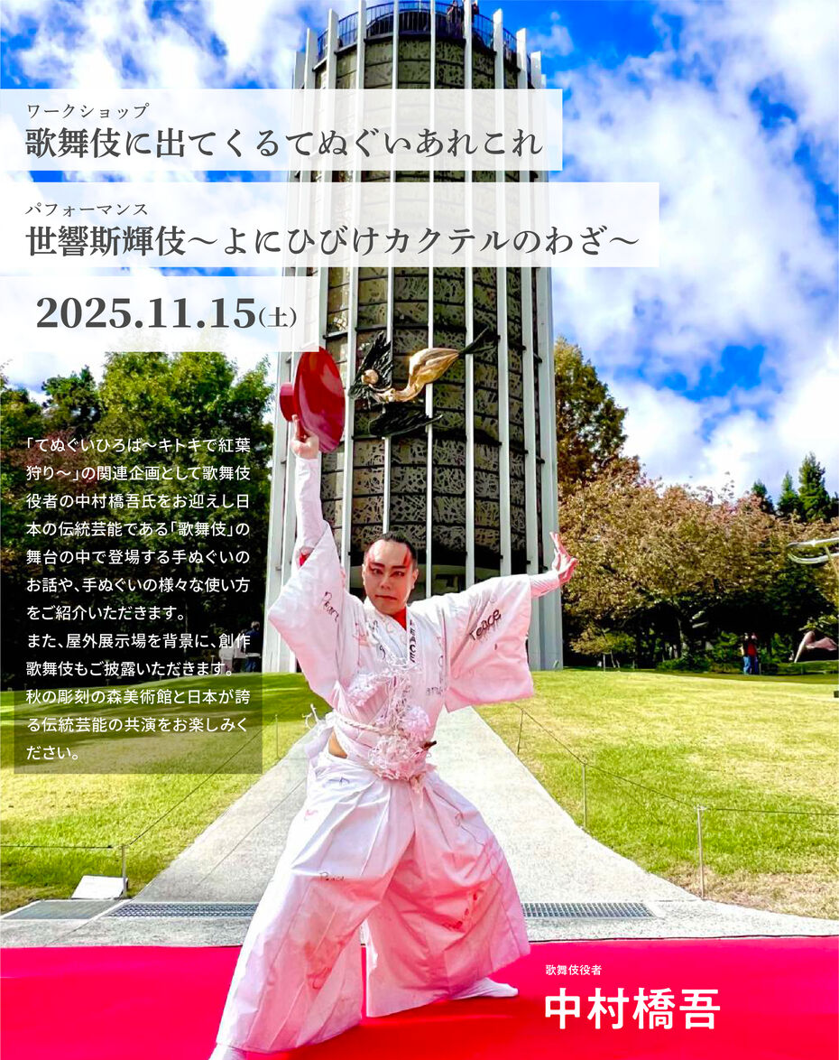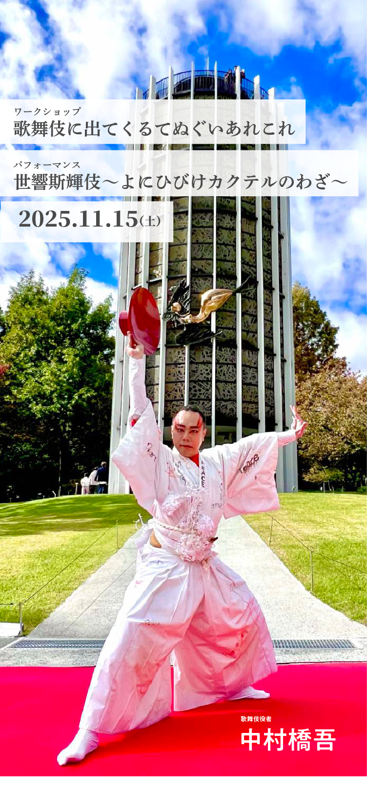 歌舞伎役者 中村橋吾2025「ワークショップ・歌舞伎に出てくるてぬぐいあれこれ」「パフォーマンス・世響斯輝伎〜よにひびけカクテルのわざ〜」